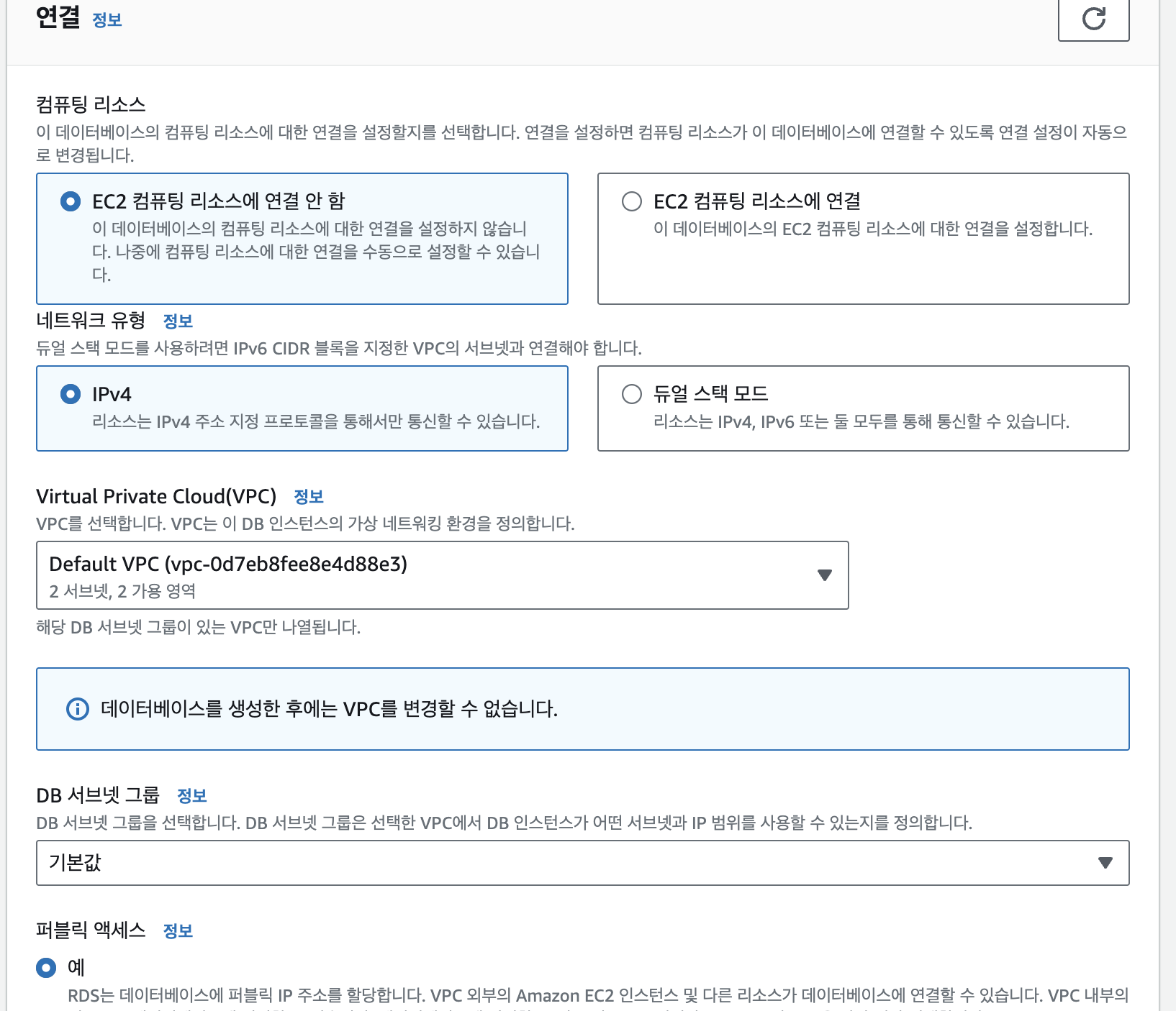 RDS 데이터베이스 생성